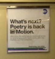 After the year of Shake the Dust (as 2011-2012 shall henceforth be known), this seemed a relevant sign to ponder on the subway. A major side effect of being a poet who produces poetry projects is headspace-loss. I would say it’s an even bigger issue than time. Two days after the final Shake the Dust Weekend, I was aware of a chink, an itch in a part of my brain I hadn’t visited for a long while. Maybe the edges of a tiny idea. I’m still tentatively coaxing that feeling back, weighing excitement and fear at the expanse of time ahead of me to explore poetry itself, for myself. The motion is slight for the moment, but just perceptible, under the avalanche of thoughts and noise belonging to a move between continents.